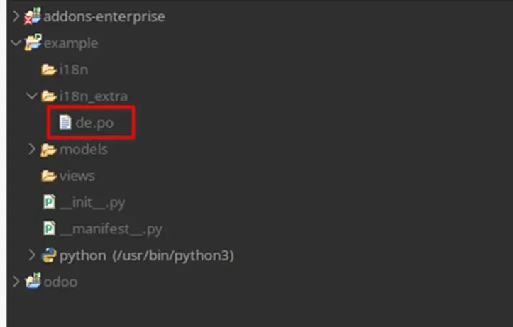 In der __manifest__.py muss in den dependencies immer das Modul aufgeführt werden, in welchem wir die Übersetzung vornehmen. In diesem Fall also „base“.