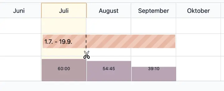 Auf Basis der Jahresplanung erfolgt monatlich eine genauere Zuweisung. Einzelne Projekte können in Monatsblöcke geschnitten werden. Odoo berechnet die Stunden automatisch – inklusive Abwesenheiten und verfügbarer Arbeitstage. Die Planung lässt sich jederzeit manuell anpassen.