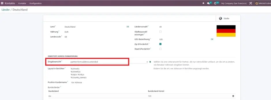- unter Eingabeansicht nun „partner.form.address.extended“ auswählen