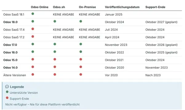 Odoo-Support für verschiedene Versionen